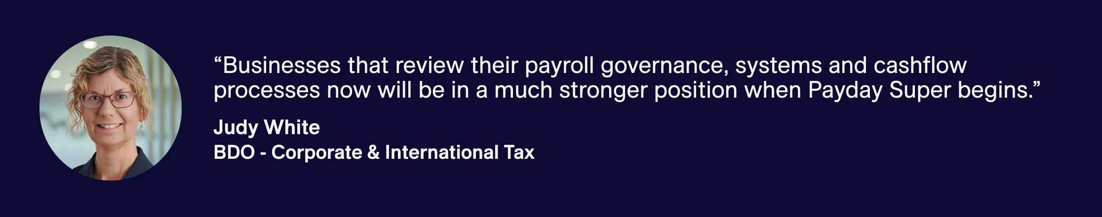"Businesses that review their payroll governance, systems and cashflow processes now will be in a much stronger position when Payday Super begins."